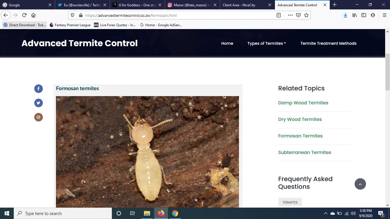 This is a website for a fumigation serice company. The purpose of the website was to educate their clients on differen types of termites.
