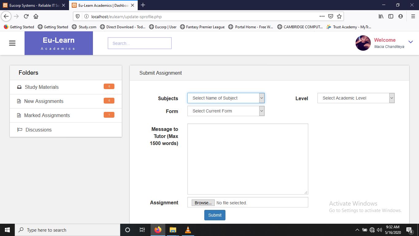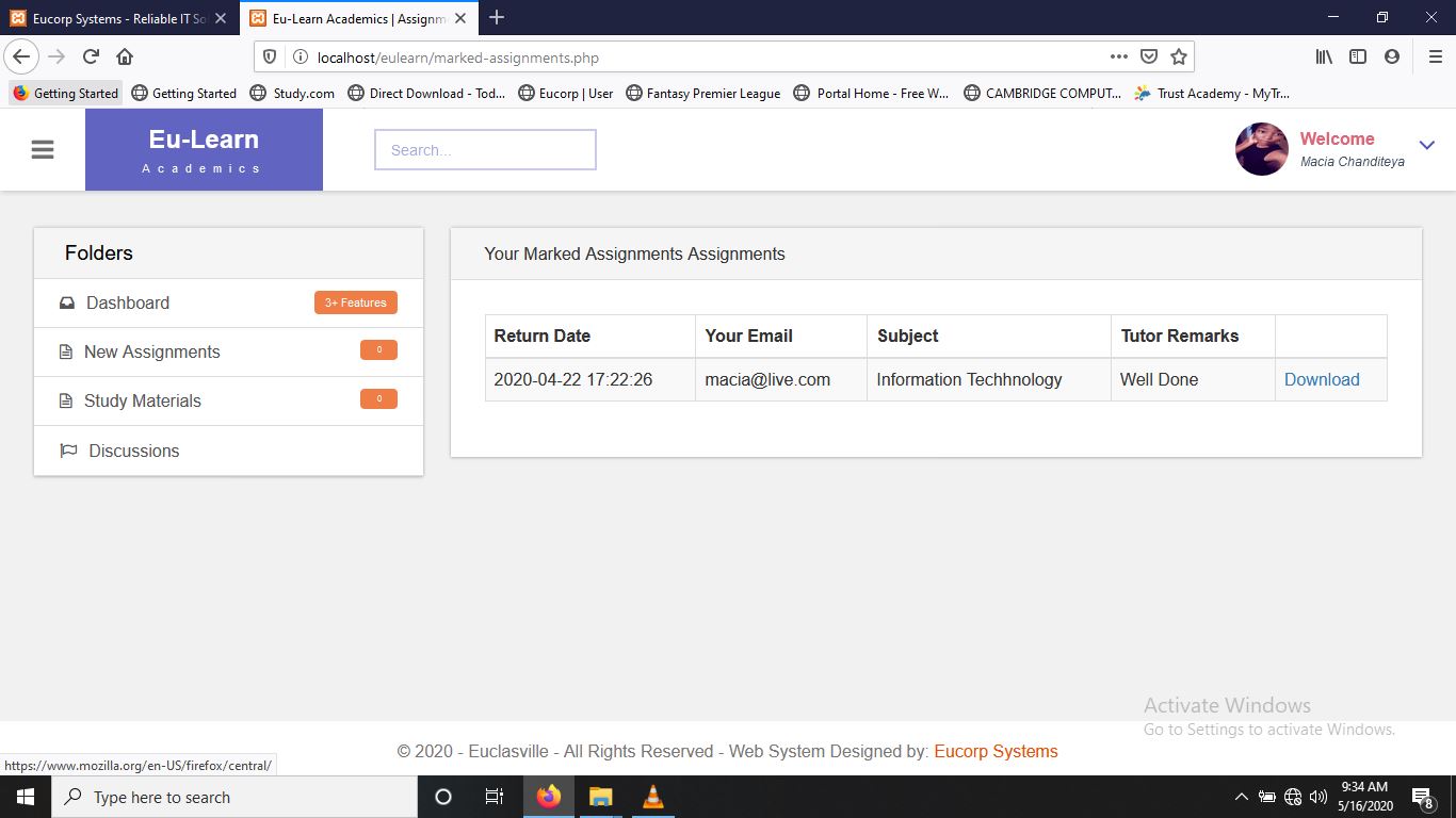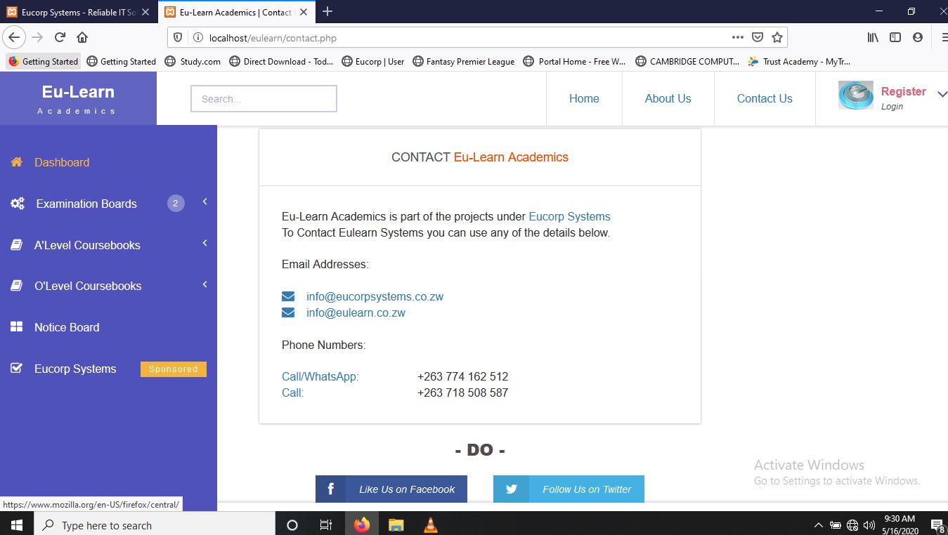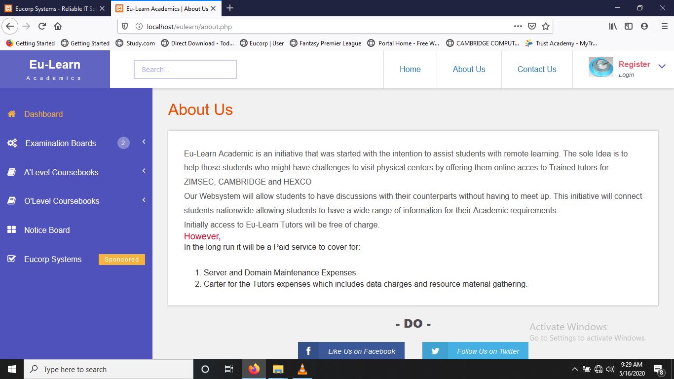 This was an eLearning Websystem developed for Cambridge and Zimsec Students. It offers realtime access to material and tutors The System was developed using PHP, MySQL, javascript, HTML5, Bootstrap and CSS5.